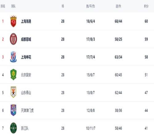 这场比赛让争冠格局更乱了,没想到这一轮前3的球队都翻车,上海海港输给山东泰山,成都蓉城和青岛西海岸踢平。目前依然是上海海港占据榜首位置,拿到60分,拥有夺冠主动权。成都蓉城以59分排名第2。上海申花58分排名第3。3队的差距最多也就2分。中超只剩下2轮比赛,谁能够笑到最后呢?