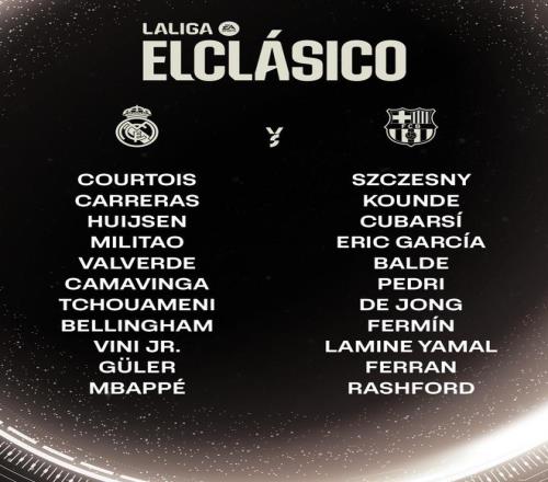 雷速体育10月26日报道宣称 北京时间今晚23点15分,西甲国家德比,皇马主场对阵巴萨。赛前,双方首发出炉。