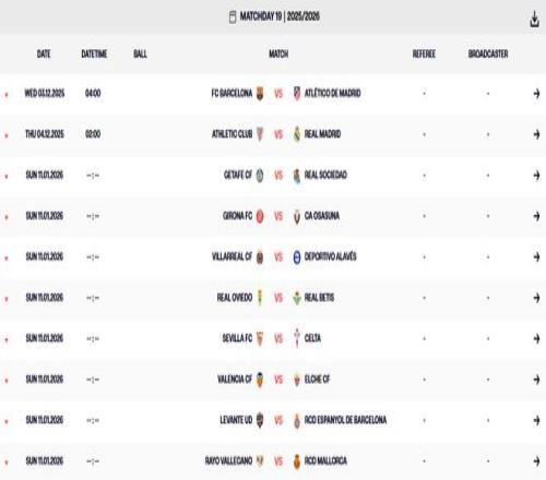 雷速体育10月30日报道宣称 由于马德里竞技、巴塞罗那、毕尔巴鄂竞技、皇家马德里四队要在明年1月参加西班牙超级杯,为避免赛程冲突,西甲第19轮不得不提前进行。