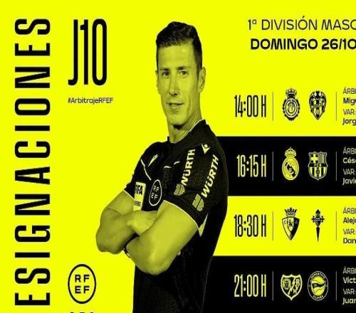 北京时间10月25日,西班牙足协公布了周日的4场西甲裁判人选,索托-格拉多将执法西班牙国家德比。从本赛季开始,西班牙足协在赛前一天公布西甲比赛裁判人选。北京时间10月26日,周日