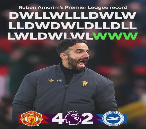 北京时间26日凌晨,英超第9轮结束多场争夺,其中曼联4比2战胜布莱顿,这是球队自阿莫林上任后首次取得联赛3连胜,而上一次红魔取得这样的成绩还是去年2月,当时的主教练还是滕哈赫。