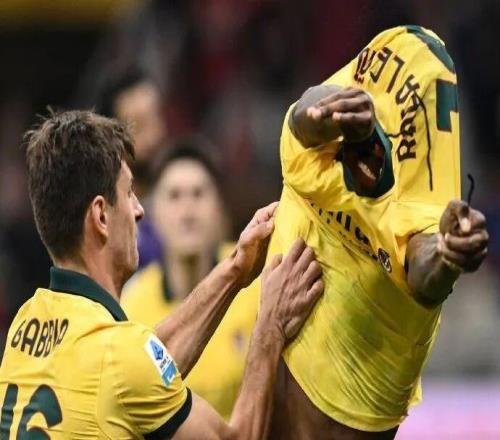 米兰圈意甲第7轮,米兰2-1佛罗伦萨。第86分钟莱奥点球破门助米兰反超,之后他想脱衣庆祝,被加比亚拦截。随后庆祝完,福法纳给莱奥把球衣领子立起来。